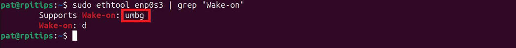 sudo ethtool <Adapter Name> | grep "Wake-on"