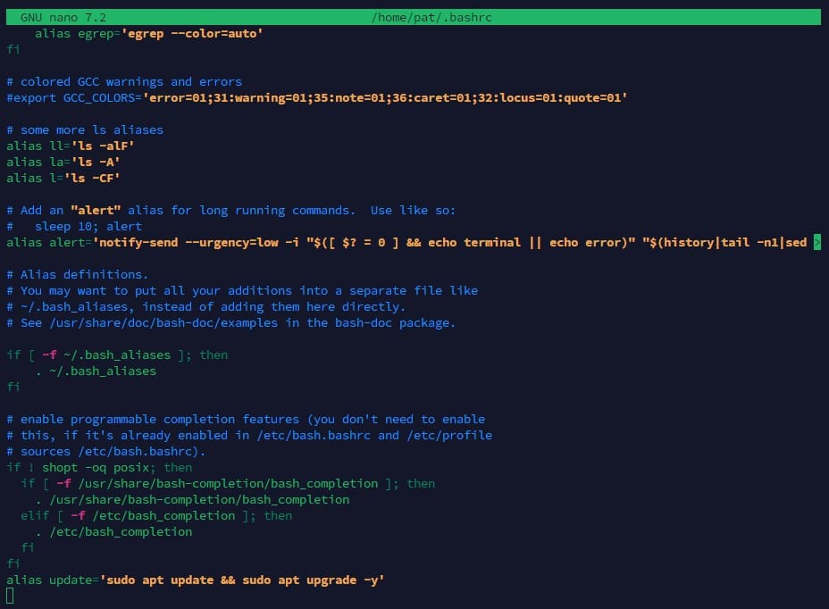 Vous pouvez créer un alias nommé « update », et chaque fois que vous saisirez update dans votre CLI, cela exécutera automatiquement la commande complète pour mettre à jour et mettre à niveau votre système complètement.