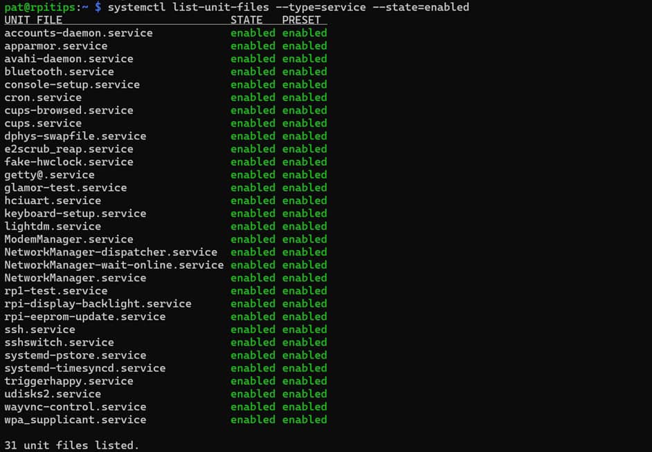 Vous pouvez également utiliser systemctl pour surveiller et gérer (en anglais) quels services sont activés et en cours d’exécution sur Raspberry Pi OS.