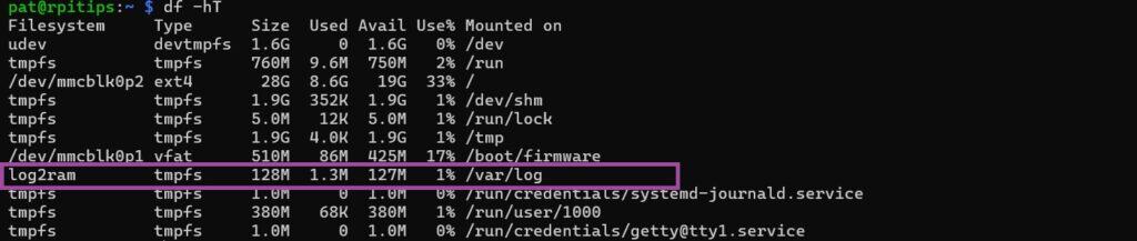 Pour éviter des opérations de lecture et d’écriture inutiles sur votre support de stockage, Log2RAM crée un point de montage vers /var/log dans la RAM (au lieu du support de stockage). Tous les journaux sont enregistrés sur ce point de montage et synchronisés avec votre support de stockage principal (carte SD) quotidiennement.