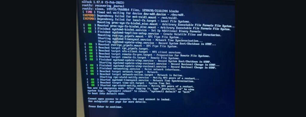 Quand un Raspberry Pi démarre en mode d’urgence ou affiche l’écran de récupération, cela signifie généralement qu’un système de fichiers critique n’a pas pu être monté correctement.
