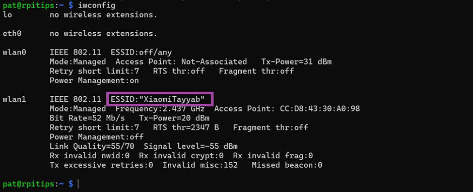 Vérifiez que les changements ont été appliqués :sudo iw dev wlan0 info