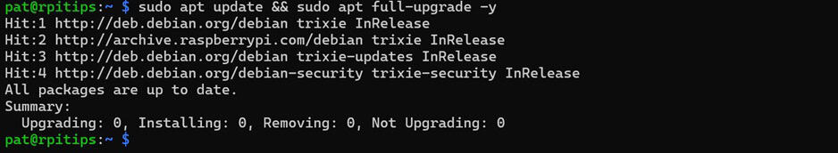 Avant de faire quoi que ce soit d’autre, assurez-vous que votre Raspberry Pi est à jour en utilisant cette commande :sudo apt update && sudo apt full-upgrade